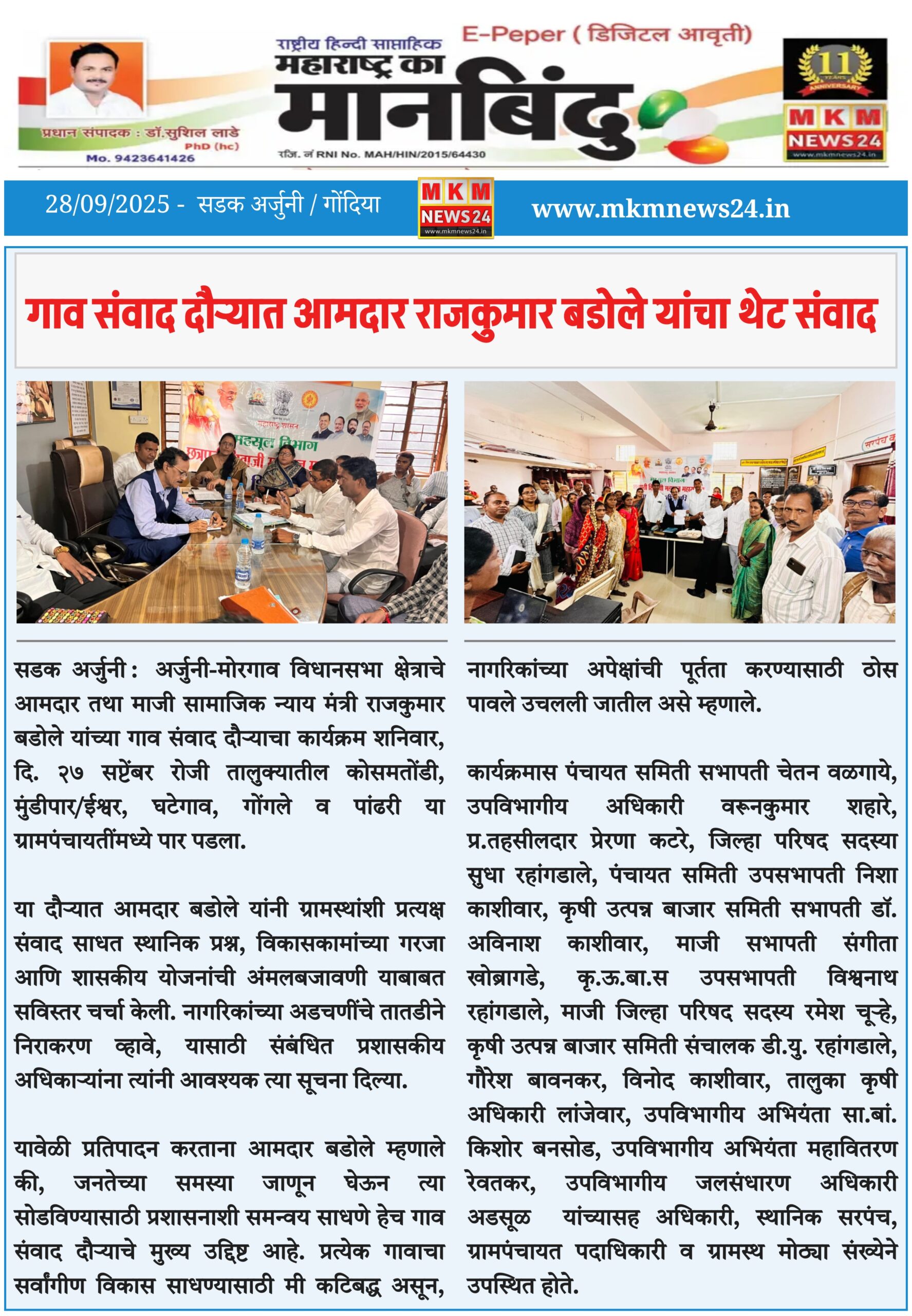 सड़क अर्जुनी गाव संवाद दौऱ्यात आमदार राजकुमार बडोले यांचा थेट संवाद September 28, 2025 editor Post Views: 275