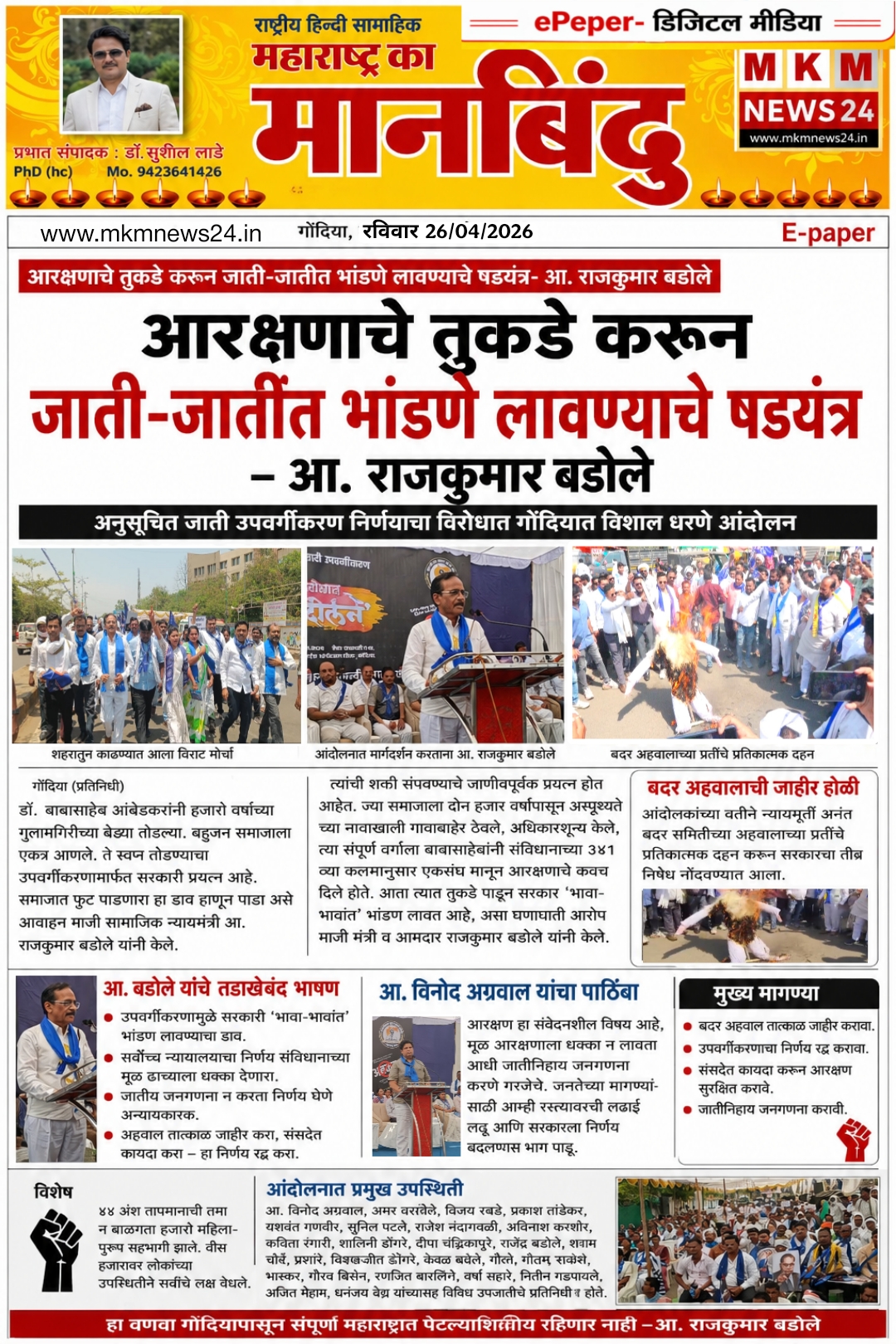 बदर अहवालाची जाहीर होळीआंदोलकांच्यावतीने न्यायमूर्ती अनंत बदर समितीच्या अहवालाच्या प्रतींचे प्रतिकात्मक दहन करून सरकारचा तीव्र निषेध नोंदवण्यात आला. महाराष्ट्राच्या टोकावर असलेल्या या जिल्ह्यातील या विशाल आंदेलनाने राज्याचे लक्ष वेधून घेतले.आपल्या तडाखेबंद भाषणात राजकुमार बडोले पुढे म्हणाले की, सर्वोच्च न्यायालयाने २०२४ मध्ये उपवर्गीकरणाचा जो निर्णय दिला, तो संविधानाच्या मूळ ढाच्याला धक्का देणारा आहे. राज्य सरकारने घाईघाईने स्थापन केलेल्या बदर समितीत ५९ अनुसूचित जातींपैकी एकाही विद्वान लोकप्रतिनिधीला किंवा तज्ज्ञाला स्थान दिले नाही. १९३१ नंतर जातीय जनगणना झाली नसताना, सरकारकडे कोणता ‘ऑब्जेक्टिव्ह डेटा’ उपलब्ध आहे? असा सवाल त्यांनी उपस्थित केला. महाराष्ट्रात महार-बौद्ध ६१%, मातंग १८.७०%, चर्मकार १०.७%, खाटीक ०.८०%, सफाई कामगार १.७% अशी आकडेवारी असताना, उपवर्गीकरणामुळे छोट्या जातींना नेमके काय मिळणार? हा केवळ भ्रमिष्ट करण्याचा प्रकार आहे. सरकारने तात्काळ हा अहवाल सार्वजनिक करावा. संसदेत कायदा करून हा निर्णय रद्द करावा, अन्यथा हा वणवा गोंदियापासून संपूर्ण महाराष्ट्रात पेटल्याशिवाय राहणार नाही, असा इशाराही त्यांनी दिला.